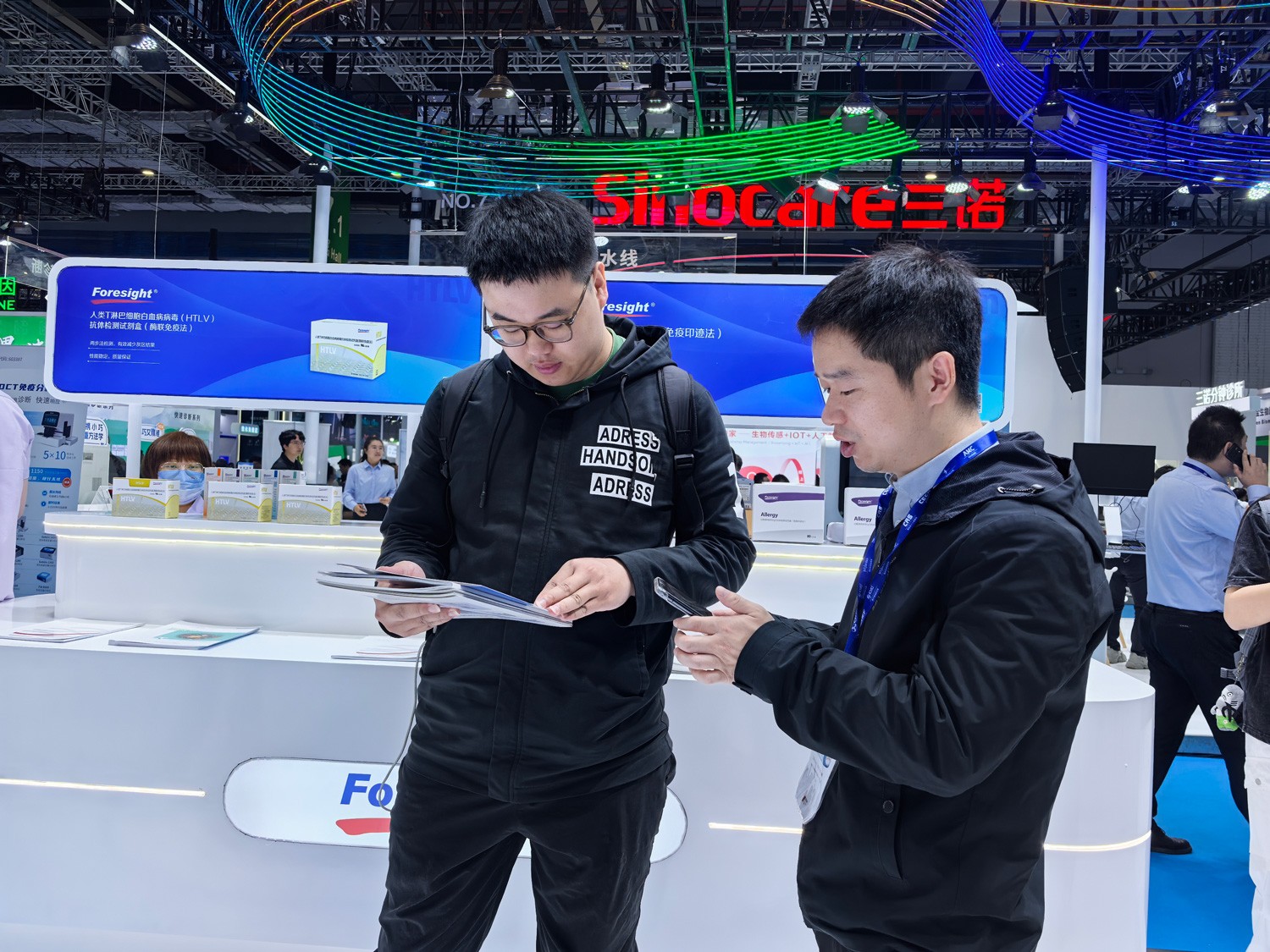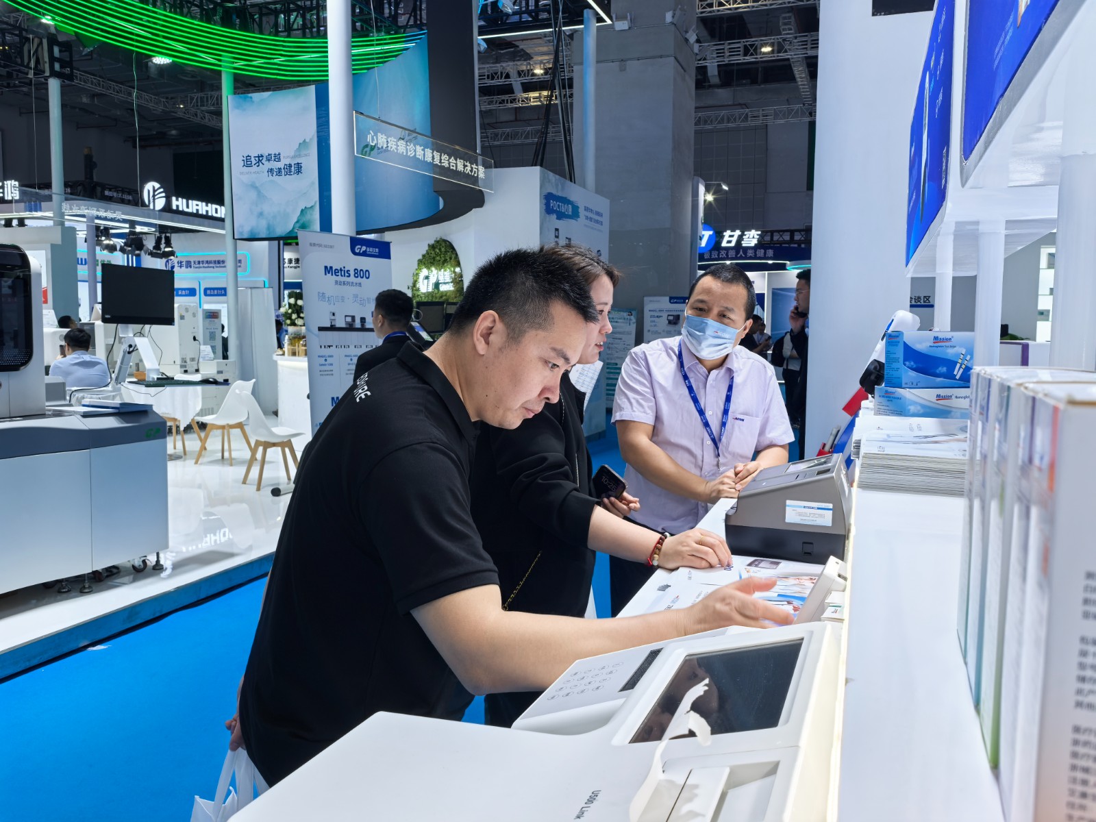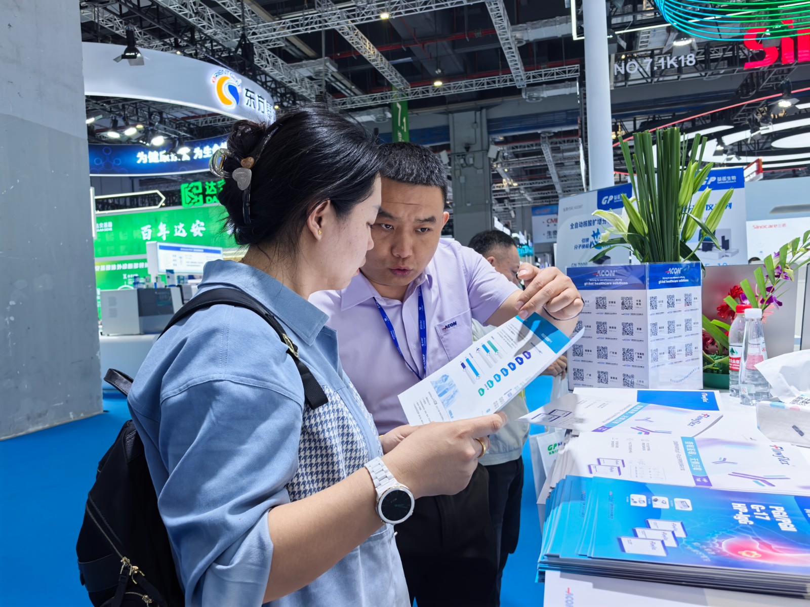 展館內(nèi)人流如織,在7.1號(hào)館核心展艾康生物以“技術(shù)普惠”為炬,點(diǎn)亮2025CMEF的舞臺(tái)。其中,快診和生化兩大技術(shù)平臺(tái)更是成為關(guān)注焦點(diǎn)。